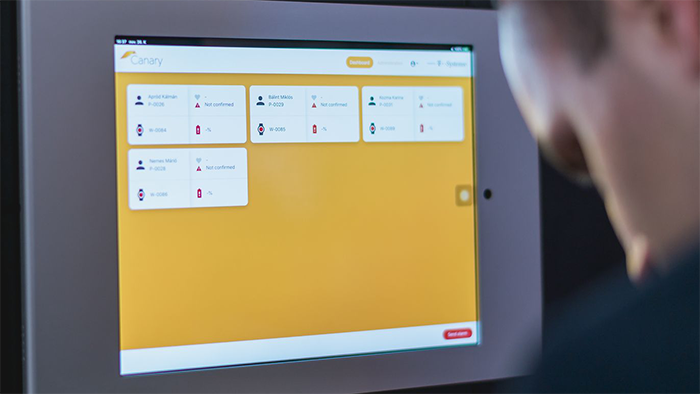 Canary is a smartwatch solution designed for hearing-impaired workers in industrial environments, providing tactile alerts during emergencies and allowing real-time feedback to administrators via a web-based platform.