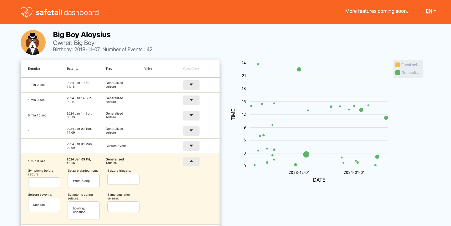 Safetail is a non-profit mobile app designed to help pet owners monitor and manage their pets' epilepsy, offering real-time health tracking and providing valuable insights to improve the quality of life for pets.